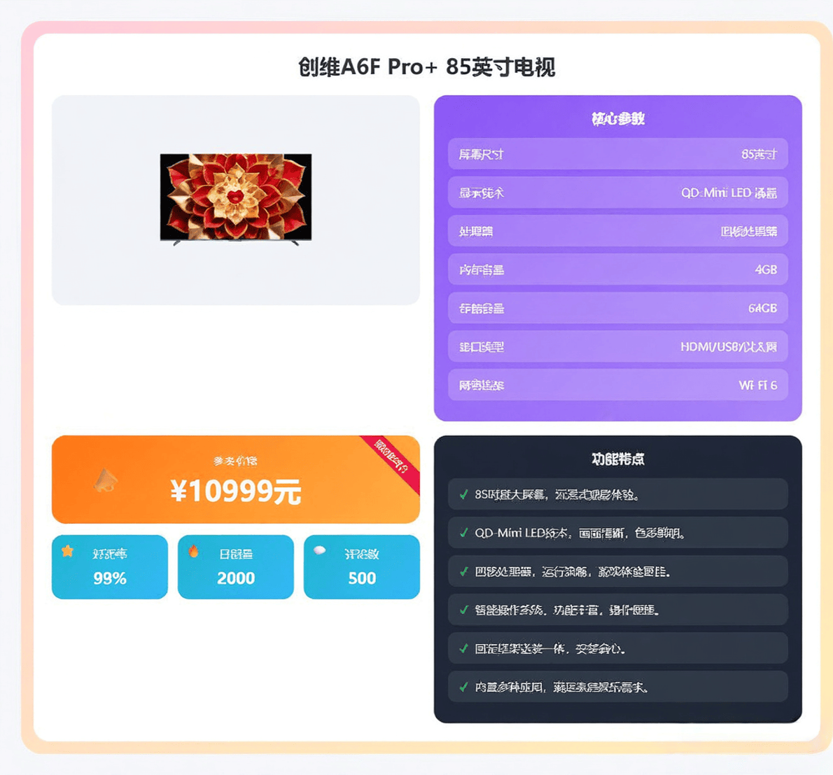 这款产品定位非常清晰,就是“次旗舰”或“主流旗舰”。它用比顶级型号更亲民的价格,提供了约95%的顶级体验。对于大多数追求高品质影音生活,但觉得100寸过大或预算稍超的家庭来说,这款85英寸的A6F Pro+是平衡了尺寸、画质、音质和价格的“甜点”之选,综合竞争力极强。